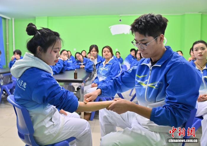 今日正在少秋人文教院,教死正在真操介护技能。中新社记者 弛瑶 摄